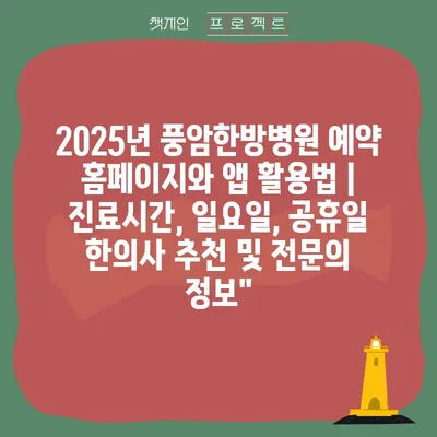 2025년 풍암한방병원 예약 홈페이지와 앱 활용법 | 진료시간, 일요일, 공휴일 한의사 추천 및 전문의 정보”