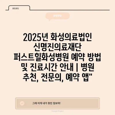 2025년 화성의료법인 신명진의료재단 퍼스트힐화성병원은 환자들에게 편리한 예약 시스템과 전문적인 진료 서비스를 제공하고 있습니다.