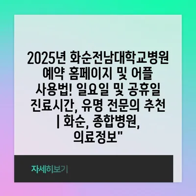 2025년 화순전남대학교병원 예약 홈페이지 및 어플 사용법! 일요일 및 공휴일 진료시간, 유명 전연락 추천 | 화순, 종합병원, 의료정보에 대해 자주 묻는 질문 TOP 5