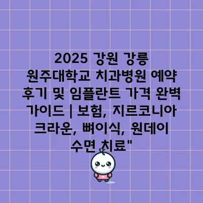 2025 강원 강릉 원주대학교 치과병원 예약 후기 및 임플란트 가격 완벽 가이드 | 보험, 지르코니아 크라운, 뼈이식, 원데이 수면 치료”