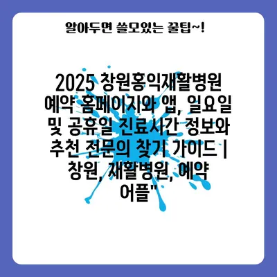 2025 창원홍익재활병원 예약 홈페이지와 앱, 일요일 및 공휴일 진료시간 정보와 추천 전연락 찾기 설명서 | 창원, 재활병원, 예약 어플” 에 대해 자주 묻는 질문 TOP 5