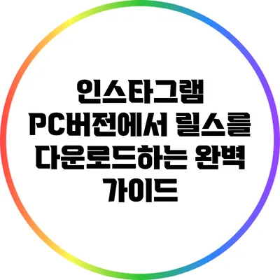 PC에서 인스타그램 릴스를 다운로드하기 위해서는 몇 가지 단계가 필요해요. 아래의 방법을 따라 해보세요.