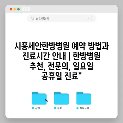 시흥세안한방병원 예약 방법과 진료시간 공지 | 한방병원 추천, 전연락, 일요일 공휴일 진료 시흥세안한방병원은 건강과 웰빙을 위한 다양한 한방 치료를 제공하는 …
