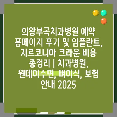 의왕부곡치과병원 예약 홈페이지 후기 및 임플란트, 지르코니아 크라운 비용 총정리 | 치과병원, 원데이수면, 뼈이식, 보험 공지 2025 의왕부곡치과병원은 최신 기술과 …