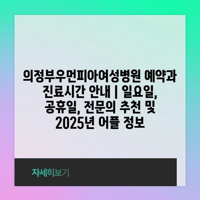 의정부우먼피아여성병원은 신뢰할 수 있는 여성 전문 병원으로, 예약과 진료시간 공지를 알려알려드리겠습니다. 일요일이나 공휴일에도 진료를 받을 수 있으며, 일정에 맞춰 편리하게 …