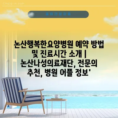 논산행복한요양병원 예약 방법 및 진료시간 소개 | 논산나성의료재단, 전연락 추천, 병원 어플 정보 논산행복한요양병원은 편안한 치료와 전문적인 진료로 다양한 환자들에게 …