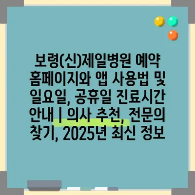 보령(신)제일병원의 예약 홈페이지와 앱 사용법에 대해 소개하겠습니다. 홈페이지 접속 후, 친절한 인터페이스를 통해 원하는 진료과목을 선택하고 원하는 날짜와 시간을 지정하여 …