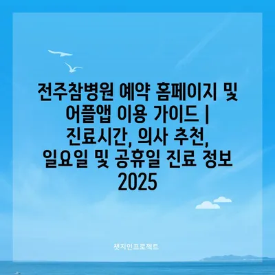 전주참병원 예약 홈페이지 및 어플앱 이용 설명서 | 진료시간, 의사 추천, 일요일 및 공휴일 진료 정보 2025 전주참병원은 다양한 의료 …