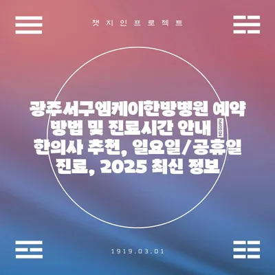 광주서구엠케이한방병원 예약 방법 및 진료시간 안내 | 한의사 추천, 일요일/공휴일 진료, 2025 최신 정보