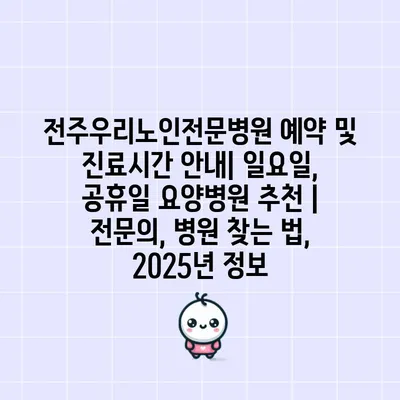 전주우리노인전문병원은 노인의 건강과 안정을 최우선으로 생각하는 전문 요양 병원입니다. 예약과 진료 시간 공지는 병원 웹사이트를 통해 확인하실 수 있으며, 특히 …