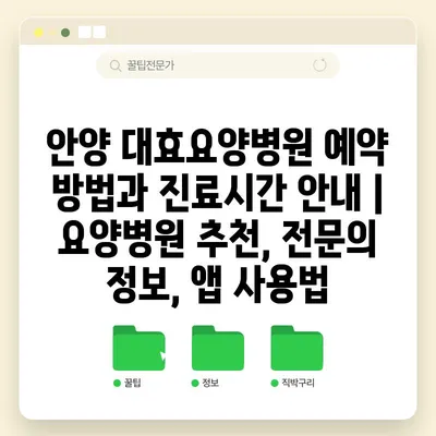 안양 대효요양병원의 예약 방법은 간편합니다. 전화 예약은 병원 전화번호로 직접 연락하시면 되고, 웹사이트를 이용한 온라인 예약도 할 수 있습니다. 진료시간은 …
