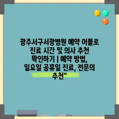 광주서구서광병원 예약 어플로 진료 시간 및 의사 추천 확인하기 | 예약 방법, 일요일 공휴일 진료, 전연락 추천 광주서구서광병원에서는 예약 어플을 …