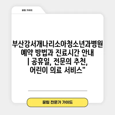 부산강서개나리소아청소년과병원은 어린이와 청소년을 위한 전문 의료 서비스를 알려알려드리겠습니다. 이 병원의 예약 방법은 매우 간단합니다. 전화 또는 병원 웹사이트를 통해 쉽게 …