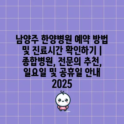 남양주 한양병원 예약 방법 및 진료시간 확인하기 | 종합병원, 전연락 추천, 일요일 및 공휴일 공지 2025 남양주에 위치한 한양병원은 다양한 …