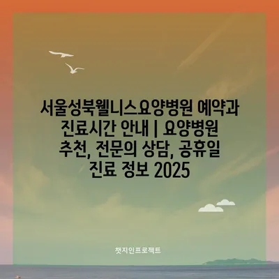 서울성북웰니스요양병원 예약과 진료시간 공지 | 요양병원 추천, 전연락 상담, 공휴일 진료 정보 2025 서울성북웰니스요양병원은 고객 중심의 맞춤형 진료를 실천하는 요양병원입니다. …