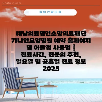 해남의료법인소망의료재단 가나안요양병원 예약 홈페이지 및 어플앱 사용법 | 진료시간, 전연락 추천, 일요일 및 공휴일 진료 정보 2025에 대해 공지제공합니다. 가나안요양병원의 …