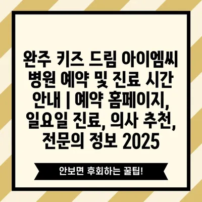 완주 키즈 드림 아이엠씨 병원 예약 및 진료 시간 공지 | 예약 홈페이지, 일요일 진료, 의사 추천, 전연락 정보 2025 …