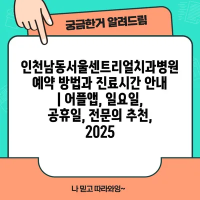 인천남동서울센트리얼치과병원 예약 방법과 진료시간 공지 | 어플앱, 일요일, 공휴일, 전연락 추천, 2025에 대해 알아보겠습니다. 먼저, 예약은 병원의 공식 어플리케이션을 통해 …