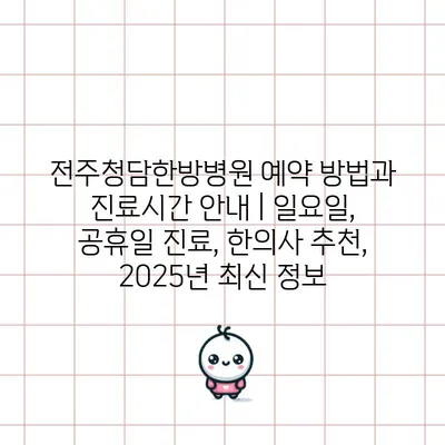 전주청담한방병원 예약 방법과 진료시간 안내 | 일요일, 공휴일 진료, 한의사 추천, 2025년 최신 정보