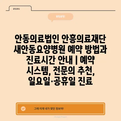 안동의료법인 안흥의료재단 새안동요양병원의 예약 방법 및 진료시간에 대해 공지제공합니다. 병원의 예약 시스템은 매우 간편합니다. 전화나 인터넷을 통해 언제든지 예약이 가능하며, …