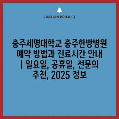 충주세명대학교 충주한방병원 예약 방법과 진료시간 공지에 대한 내용을 알려알려드리겠습니다. 병원 예약은 전화나 온라인 시스템을 통해 할 수 있습니다. 공식 홈페이지에 …