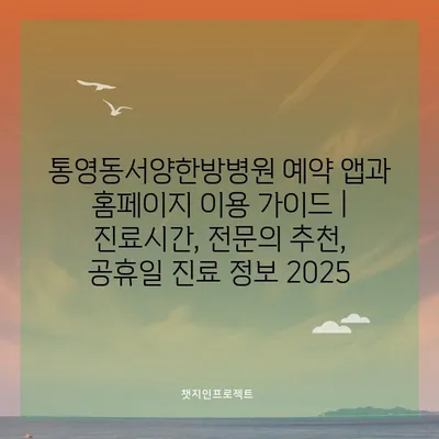 통영동서양한방병원 예약 앱과 홈페이지 이용 설명서 | 진료시간, 전연락 추천, 공휴일 진료 정보 2025 통영동서양한방병원은 편리한 예약 시스템을 통해 언제 …
