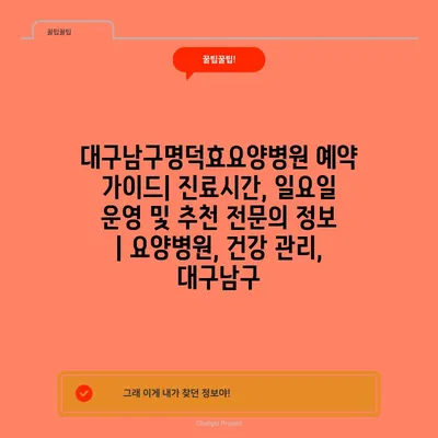 대구남구명덕효요양병원은 고품질의 건강 관리 서비스를 알려알려드리겠습니다. 환자분들에게 필요한 모든 진료를 위해 최선을 다하고 있습니다. 병원은 월요일부터 토요일까지 운영되며, 일요일도 일부 …