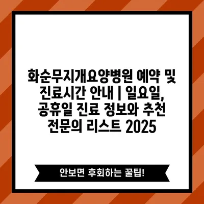 화순무지개요양병원 예약 및 진료시간 공지 | 일요일, 공휴일 진료 정보와 추천 전연락 리스트 2025 화순무지개요양병원은 환자 여러분의 건강과 편의를 위해 …