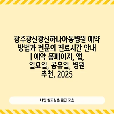 광주광산광산하나아동병원 예약 방법과 전연락 진료시간 공지 광주광산광산하나아동병원은 편리한 예약 방식을 알려알려드리겠습니다. 환자는 공식 홈페이지 또는 모바일 앱을 통해 손쉽게 예약할 …