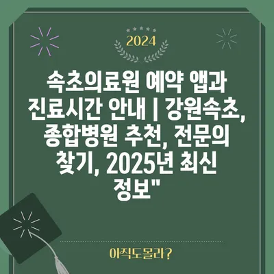 속초의료원 예약 앱과 진료시간 공지 | 강원속초, 종합병원 추천, 전연락 찾기, 2025년 최신 정보 강원도 속초에 위치한 속초의료원은 지역 주민과 …