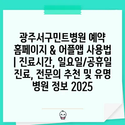 광주서구민트병원 예약 홈페이지 & 어플앱 사용법 | 진료시간, 일요일/공휴일 진료, 전연락 추천 및 유명 병원 정보 2025에 대해 알아보겠습니다. 먼저, …