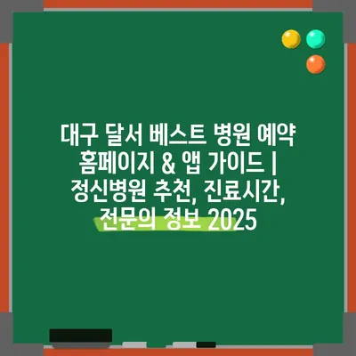 대구 달서 베스트 병원 예약 홈페이지 & 앱 가이드 | 정신병원 추천, 진료시간, 전문의 정보 2025