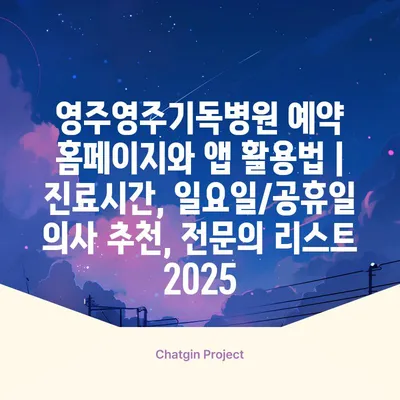 영주영주기독병원 예약 홈페이지와 앱 활용법 | 진료시간, 일요일/공휴일 의사 추천, 전연락 리스트 2025 영주영주기독병원은 환자들이 쉽게 예약하고 진료를 받을 수 …
