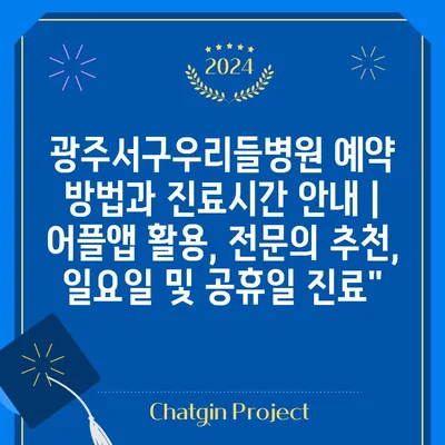 광주서구우리들병원 예약 방법과 진료시간 공지 | 어플앱 활용, 전연락 추천, 일요일 및 공휴일 진료 광주서구우리들병원은 환자 여러분의 편의를 위해 어플 …