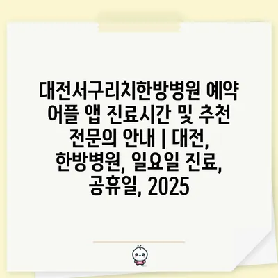 대전서구리치한방병원 예약 어플 앱 진료시간 및 추천 전연락 공지 | 대전, 한방병원, 일요일 진료, 공휴일, 2025 대전서구리치한방병원은 한방치료를 전문으로 하는 …