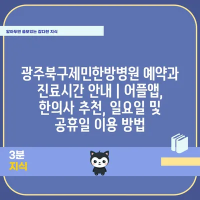 광주북구제민한방병원 예약과 진료시간 공지 광주북구제민한방병원은 편리한 예약 시스템을 알려드려 환자들이 쉽게 진료를 받을 수 있도록 돕고 있습니다. 예약은 병원의 공식 …