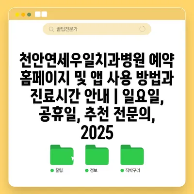 천안연세우일치과병원 예약 홈페이지 및 앱 사용 방법과 진료시간 안내 | 일요일, 공휴일, 추천 전문의, 2025