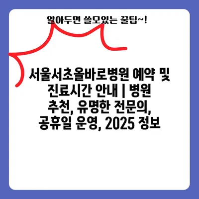 서울서초올바로병원 예약 및 진료시간 공지 | 병원 추천, 유명한 전연락, 공휴일 운영, 2025 정보 서울서초올바로병원은 최신 의료 시설과 전문가들이 모여 …