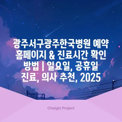광주서구광주한국병원 예약 홈페이지 & 진료시간 확인 방법 | 일요일, 공휴일 진료, 의사 추천, 2025에 대해 알아보겠습니다. 먼저, 광주한국병원은 편리한 예약 …