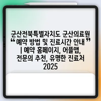 군산전북특별자치도 군산의료원 예약 방법 및 진료시간 공지 | 예약 홈페이지, 어플앱, 전연락 추천, 유명한 진료처 2025 군산의료원은 신뢰할 수 있는 …