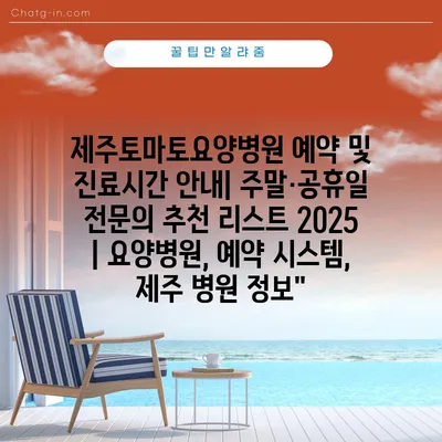 제주토마토요양병원 예약 및 진료시간 공지| 주말·공휴일 전연락 추천 리스트 2025 | 요양병원, 예약 시스템, 제주 병원 정보 제주토마토요양병원은 여러분의 건강을 …