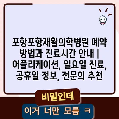 포항포항재활의학병원은 쉽게 예약할 수 있는 방법과 친절한 진료시간으로 환자들을 맞이합니다. 예약 방법으로는 어플리케이션을 통해 간편하게 진행할 수 있으며, 인터넷 포털사이트에서도 …