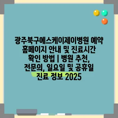 광주북구에스케이제이병원 예약 홈페이지 공지 및 진료시간 확인 방법 | 병원 추천, 전연락, 일요일 및 공휴일 진료 정보 2025 광주북구에스케이제이병원은 환자 …