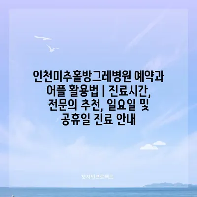 인천미추홀방그레병원 예약과 어플 활용법 | 진료시간, 전문의 추천, 일요일 및 공휴일 진료 안내