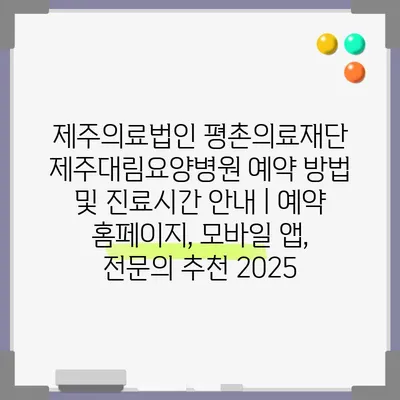제주의료법인 평촌의료재단 제주대림요양병원 예약 방법 및 진료시간 공지 | 예약 홈페이지, 모바일 앱, 전연락 추천 2025 제주대림요양병원에서는 편리한 예약 서비스를 …