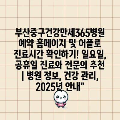 부산중구건강만세365병원 예약 홈페이지 및 어플로 진료시간 확인하기! 일요일, 공휴일 진료와 전연락 추천 | 병원 정보, 건강 관리, 2025년 공지 부산중구건강만세365병원은 …
