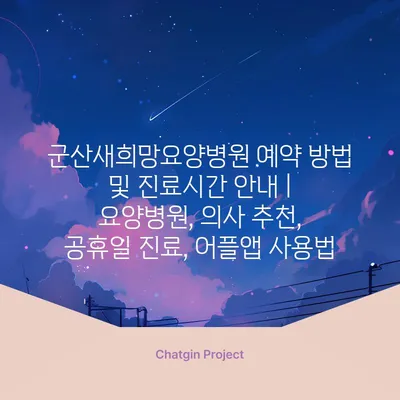 군산새희망요양병원 예약 방법 및 진료시간 공지 군산새희망요양병원은 신속하고 간편한 예약 시스템을 알려드려 환자분들이 편리하게 이용할 수 있도록 돕고 있습니다. 예약은 …