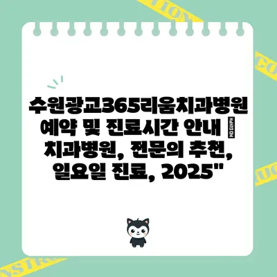 수원광교365리움치과병원 예약 및 진료시간 공지 | 치과병원, 전연락 추천, 일요일 진료, 2025 수원광교365리움치과병원은 고객 중심의 진료와 전문적인 치료로 많은 환자들에게 …