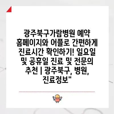 광주북구가람병원 예약 홈페이지와 어플로 간편하게 진료시간 확인하기! 일요일 및 공휴일에도 진료 서비스를 알려드려, 환자 분들의 다양한 건강 필요를 충족합니다. 특히, …
