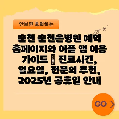 순천 순천은병원 예약 홈페이지와 어플 앱 이용 설명서 | 진료시간, 일요일, 전연락 추천, 2025년 공휴일 공지에 대해 알아보겠습니다. 먼저, 순천은병원은 …